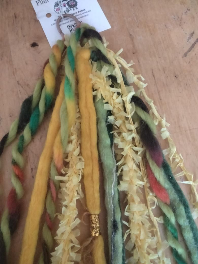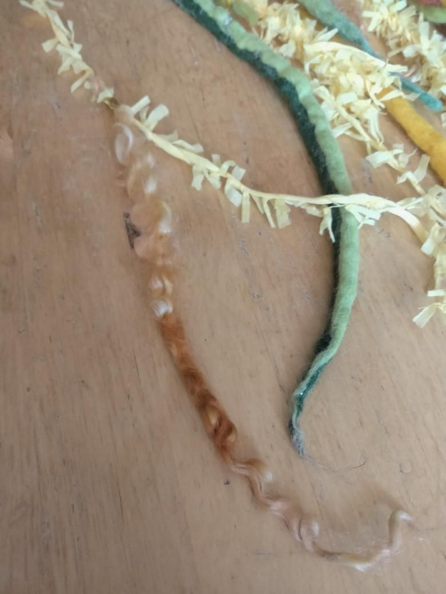 Laine feutree main avec des petits bijoux et laine de commerce,vet des boucles de toison Masham. Voir photos