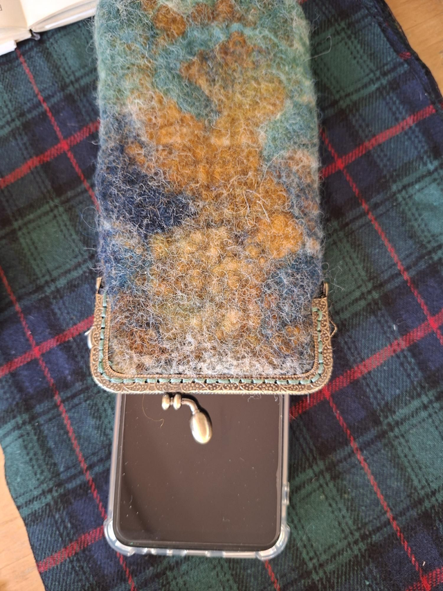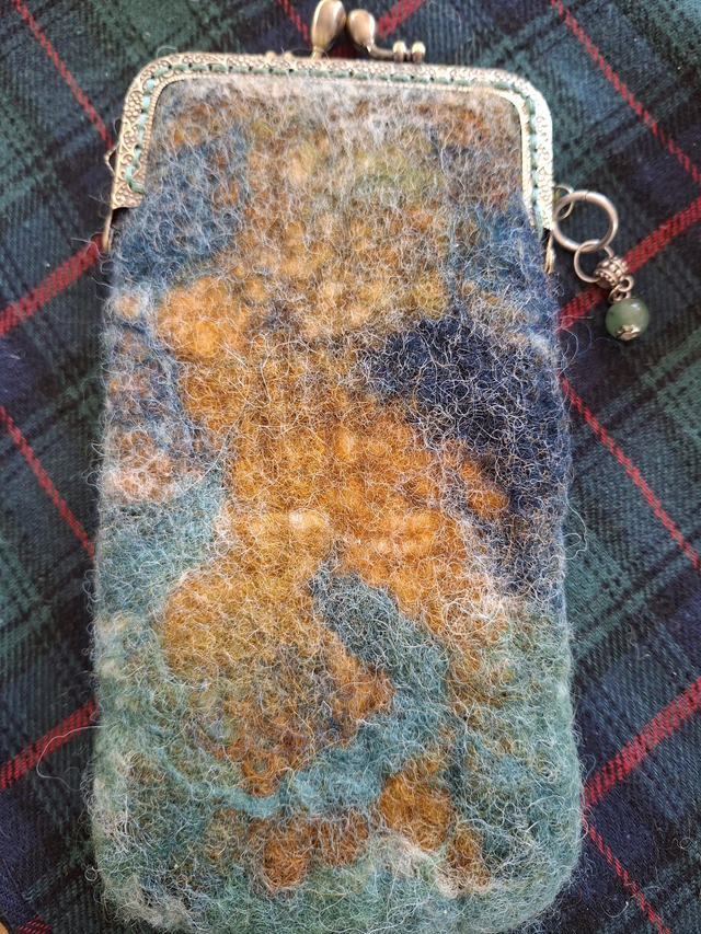 Etui a lunettes/porte telephone fait en laine feutré main.