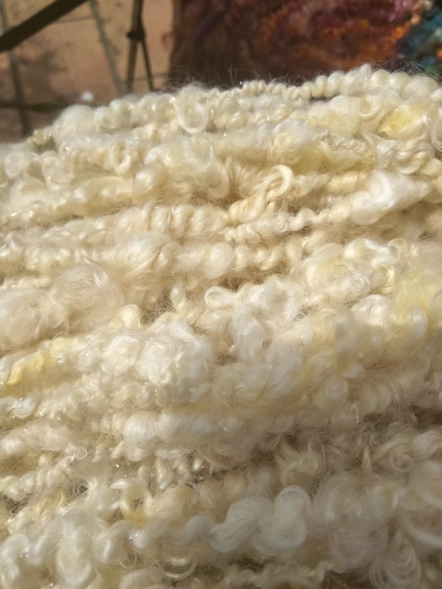 Laine des toisons anglaises Teeswater, Masham avec le retard en fil fantaisie Blanc avec du nylon, qui donne cette laine une legere brilliance.