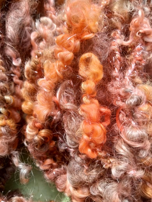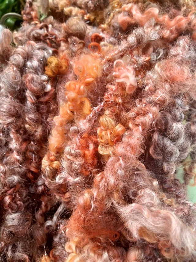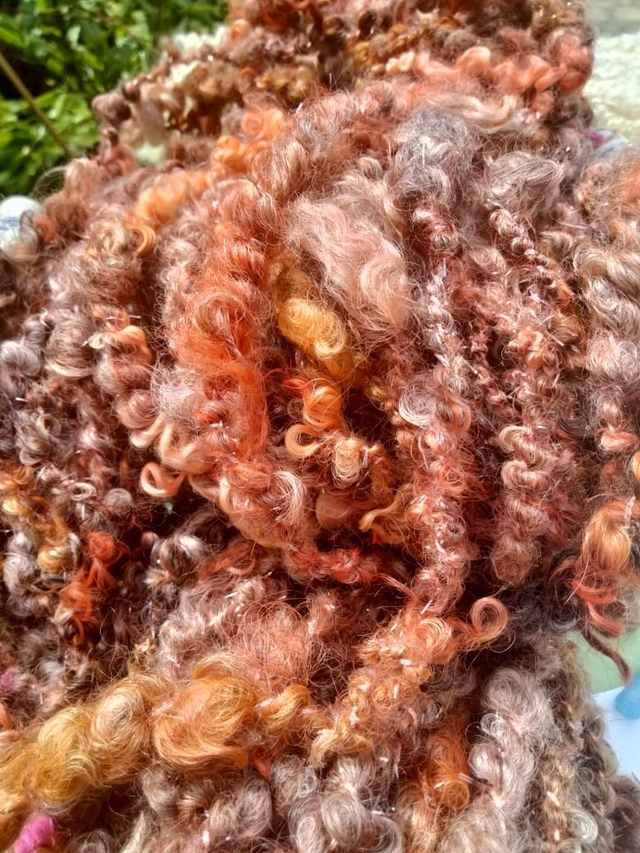 La laine a été preparée, plus teinté par mes soins apres je l'ai file pour faire cette laine d'art, qui peut etre super pour vos créations uniques ....tricot, crochet, tissage....