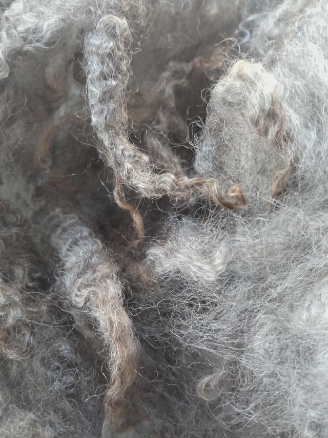 Petit morceaux de toison de Leicester Longwool croisé avec un Gotland.