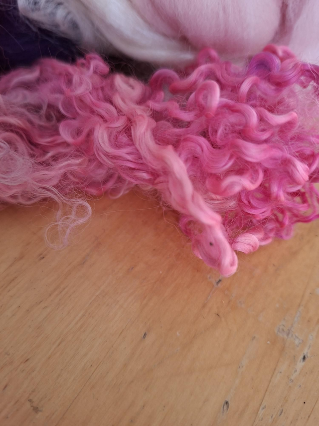 Boucles de Teeswater teintees main.