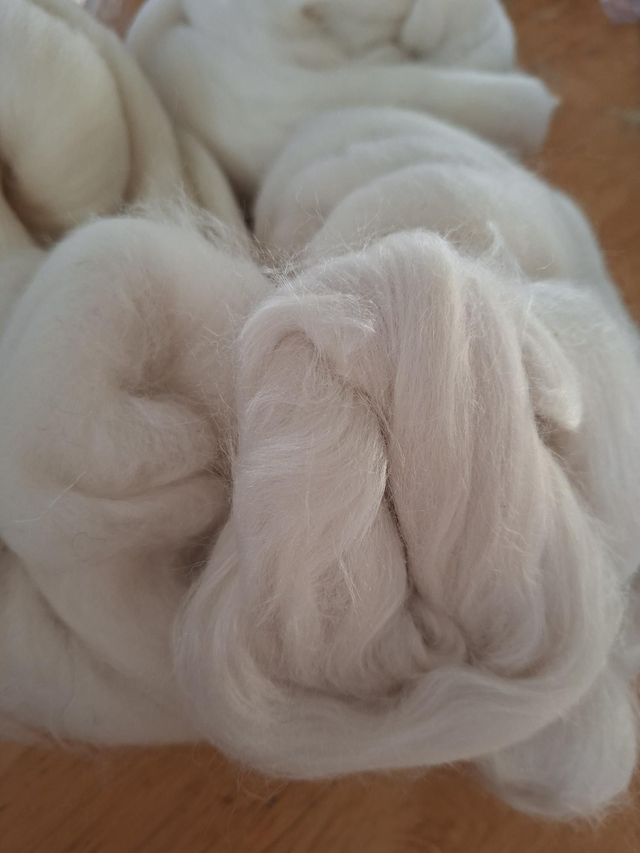 5 petites meches de laines differentes avec une qui a de la soie incorporé.