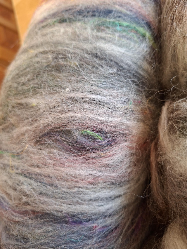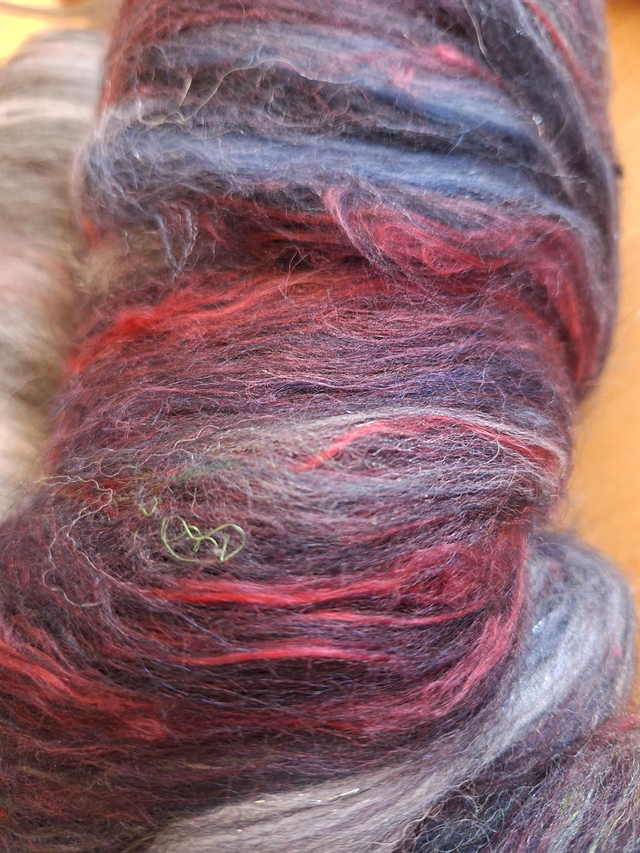 Melange de fibres, laine, Angelina, soie, soie de sari recyclé.