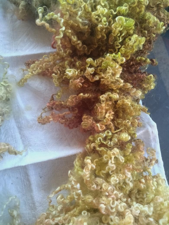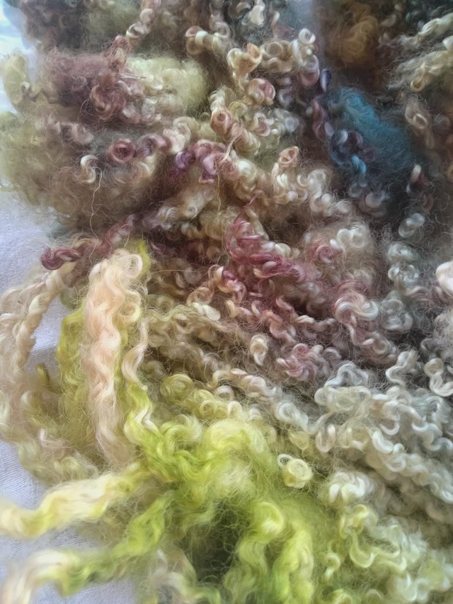 Morceaux de toison Teeswater teinté main.