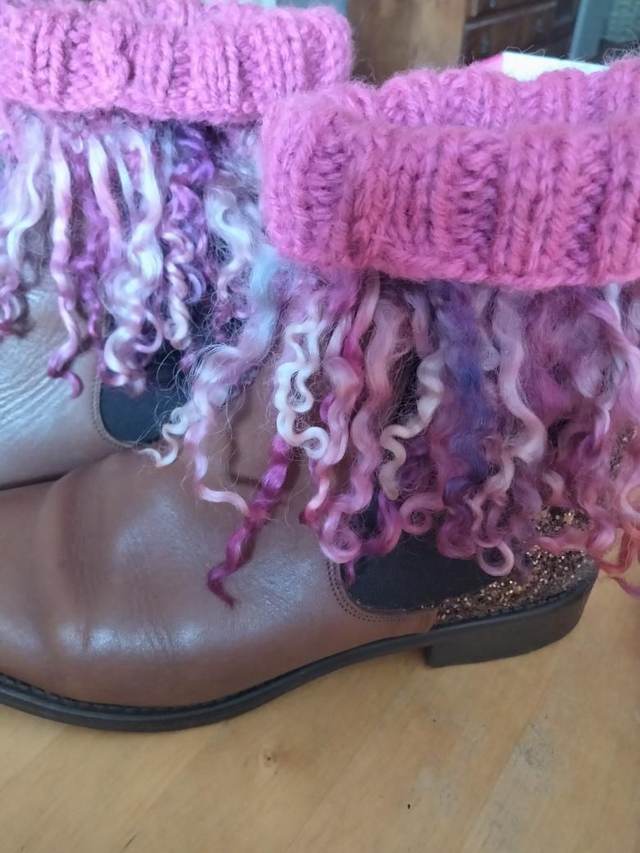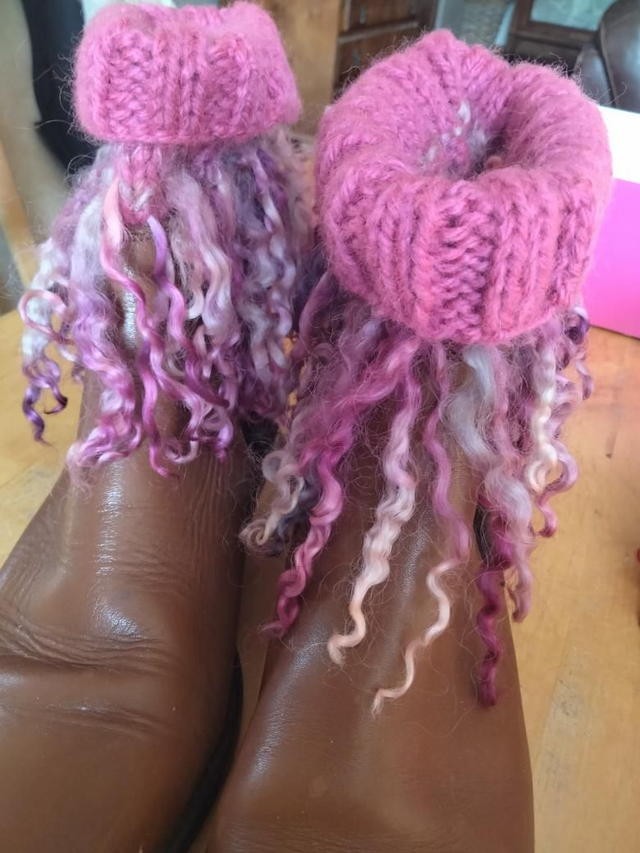 Couleur rose bonbons avec des boucles de Teeswater anglais teintées main couleurs rose, fuschia, violet, magenta.