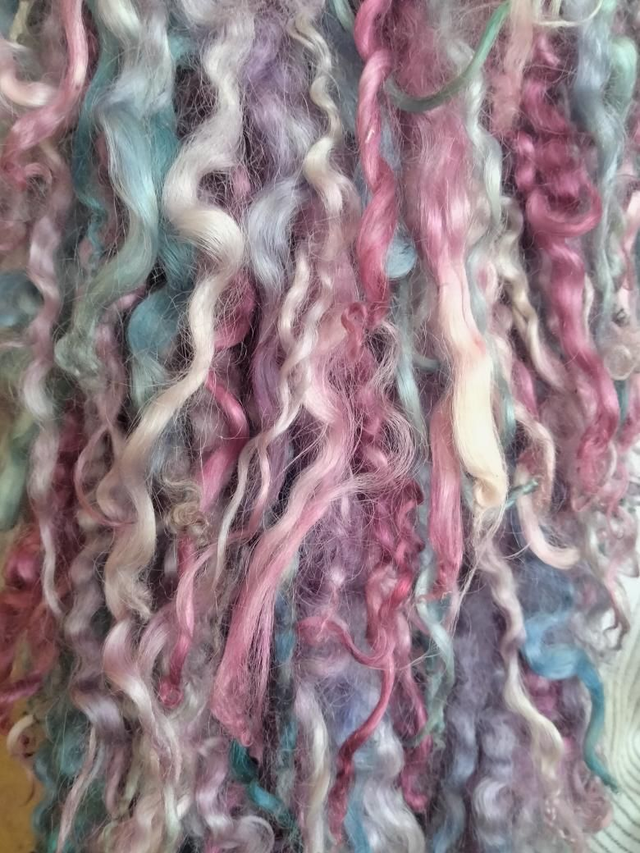 Boucles de mouton Masham anglais que j'ai preparé puis teinté main.
