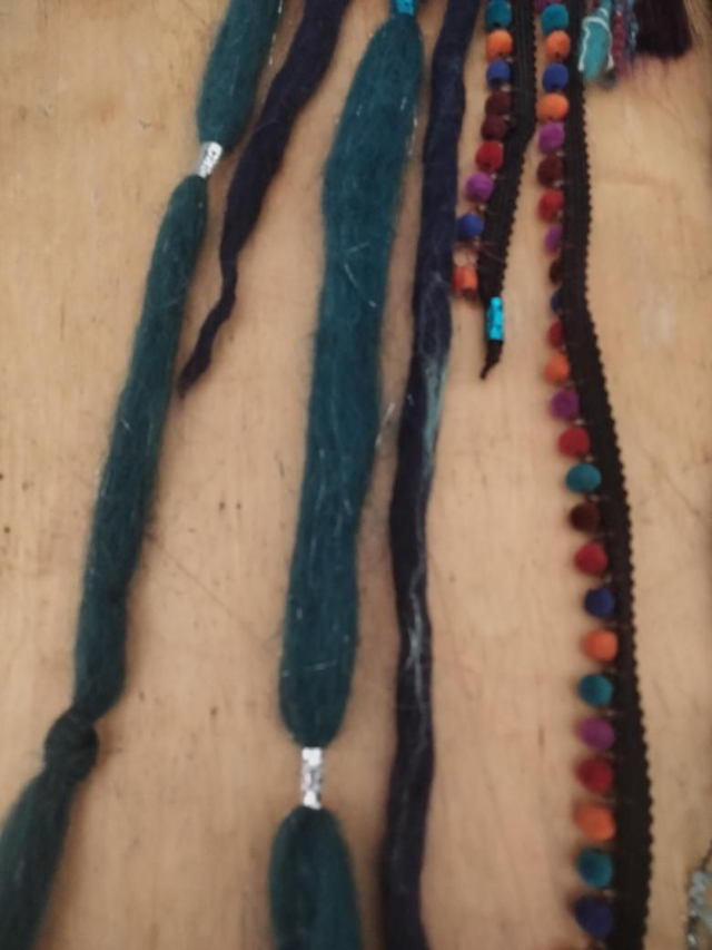 Pour le fun.......dreadlocks fantaisie fait main avec laine feutree et de la laine filée main.